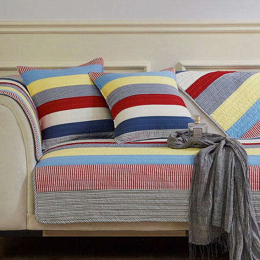 Colorful Striped Quilted Sofa Chic Protector Comfort Couch Cover