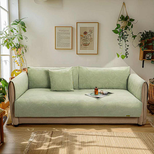 Luxury Solid Color Leaf Textured Jacquard Sofa Protector Couch Cover
