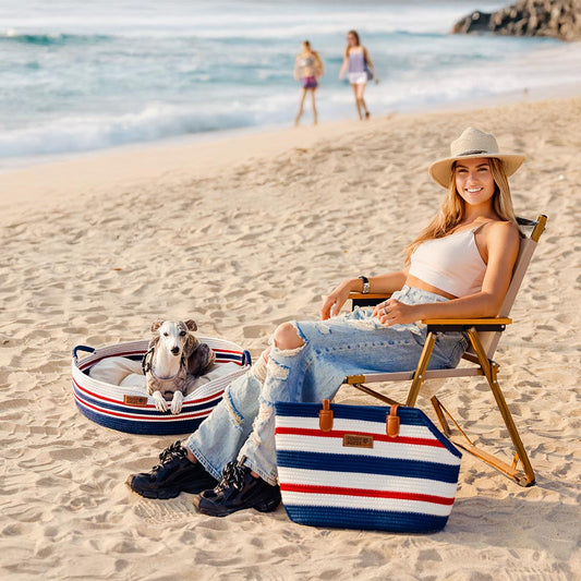 Handmade Lightweight Cotton Woven Beach Bag Pet Carrier- Summer Vacation