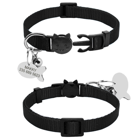 Personalized Safety Breakaway Nylon Quick Release Cat Collar ID Tag Set