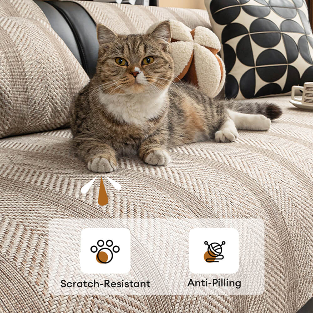 Minimalist Herringbone Weave Breathable Faux Linen All-Season Couch Cover