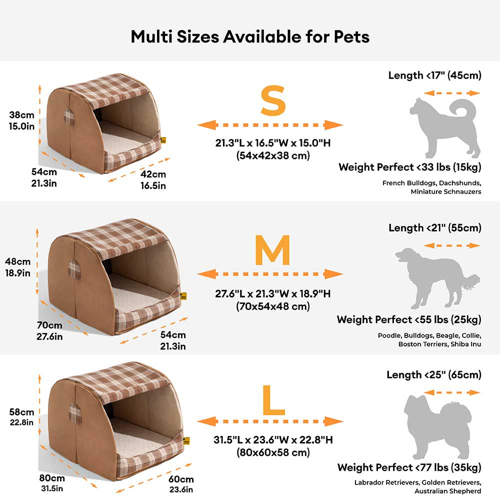 Give your pet the ultimate cozy retreat with our Classical Plaid House Orthopedic Dog Bed. This charming bed provides a warm and inviting space for pets who love to snuggle and feel secure. The plush, cushioned walls offer both warmth and support, while the arch-shaped design creates a private, den-like haven that pets instinctively adore.