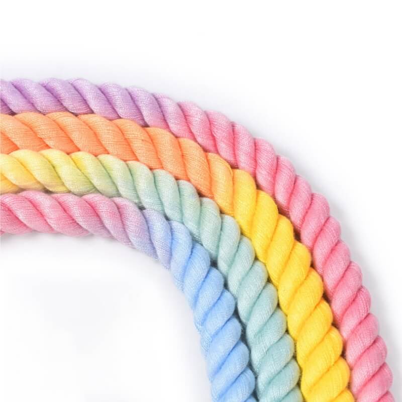 Varied cutting lengths by size result in a random array of macaron hues due to the crafting process.