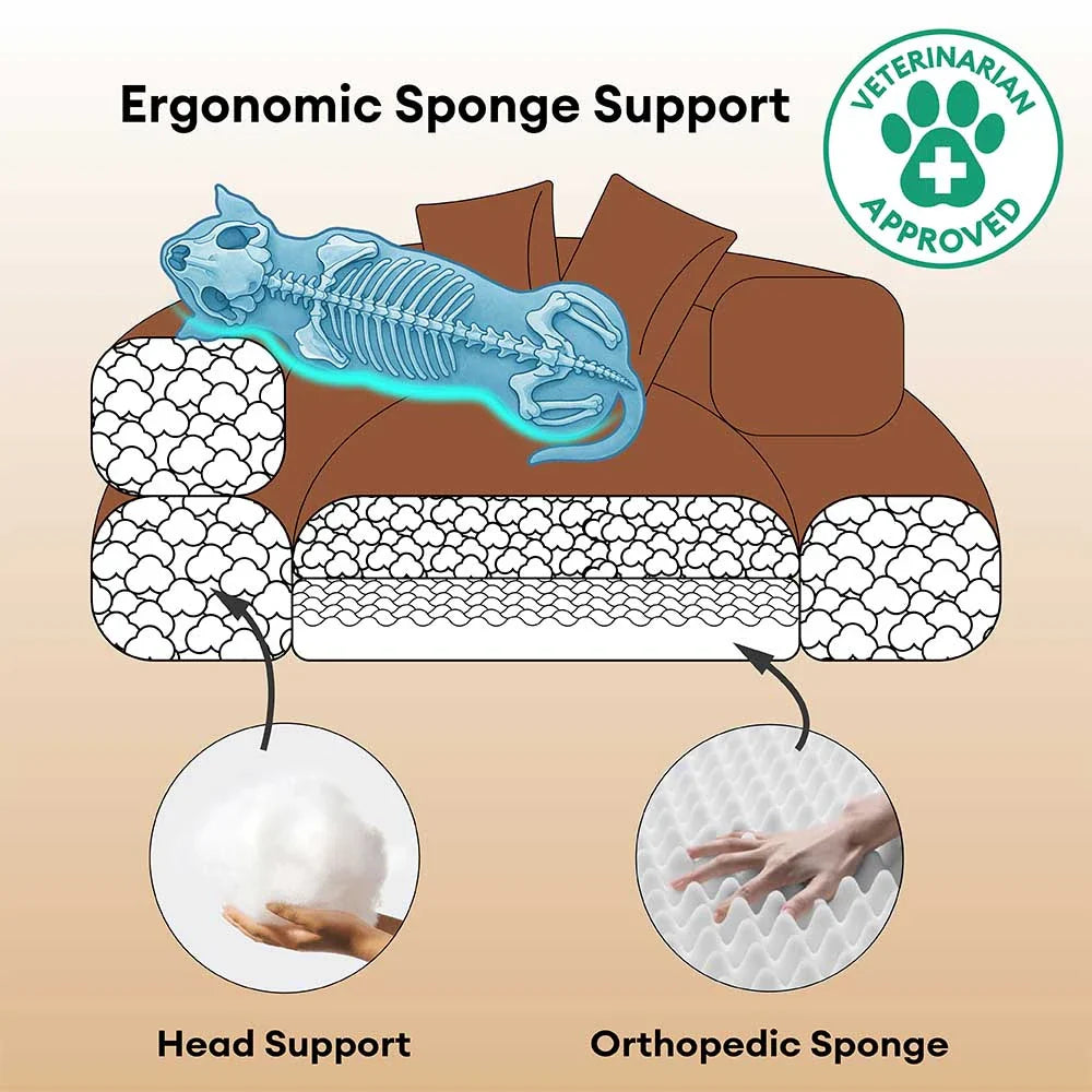 • Orthopedic Dual-Layer Support: Filled with high-density egg-crate sponge and PP cotton, this bed cushions joints and muscles, making it ideal for senior pets or those needing extra care.