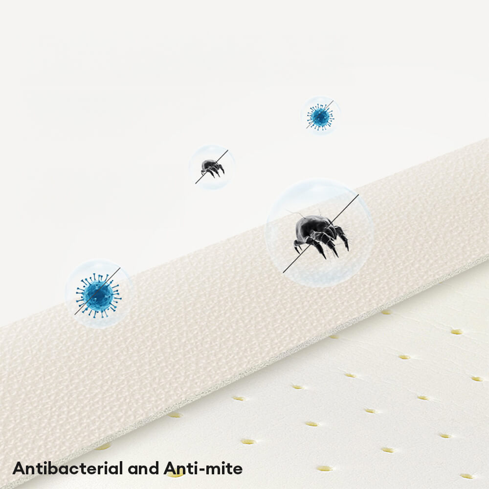 • Anti-Mite Protection: Dual-layer protection with latex and fabric helps repel 99% of dust mites, ensuring a cleaner sleeping space.