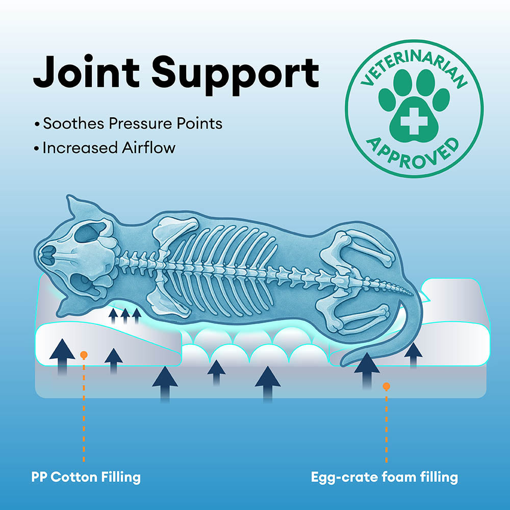 • Supportive Orthopedic Design: Offers optimal joint support for pets of all sizes, enhancing their relaxation and sleep quality.