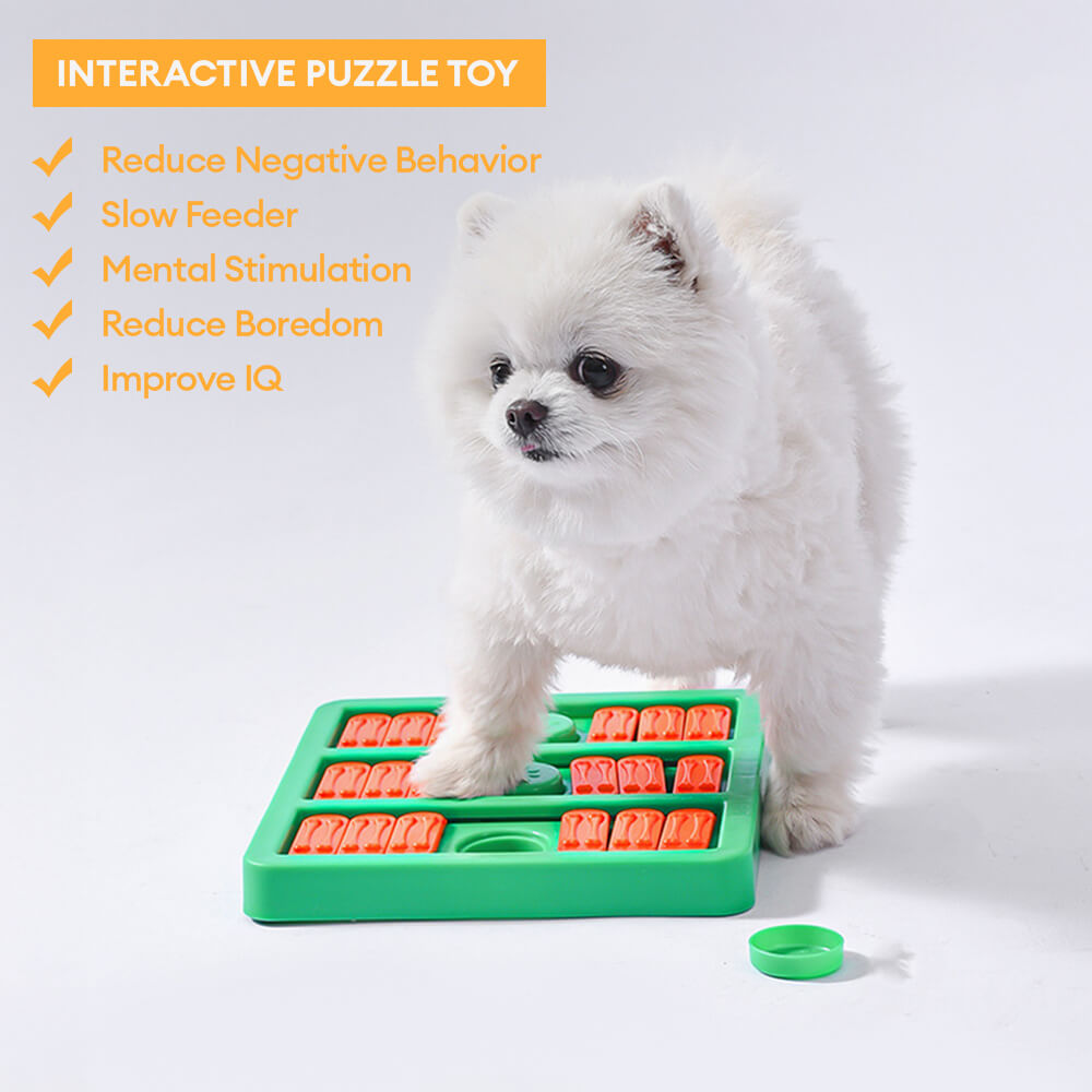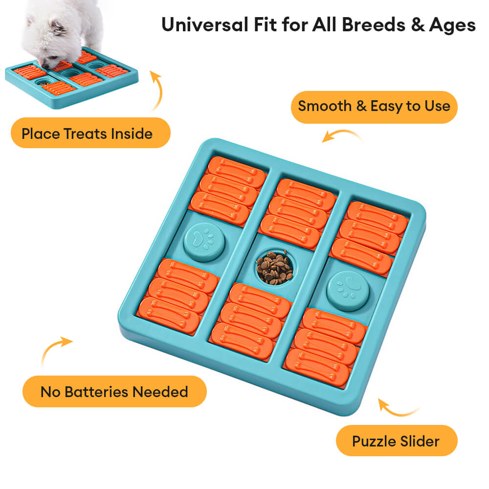 • Mental Stimulation & Engagement: Ideal for keeping dogs mentally active, this puzzle toy challenges your pet to solve it by sliding the pieces and uncovering hidden treats, which helps relieve boredom and reduce destructive behavior.