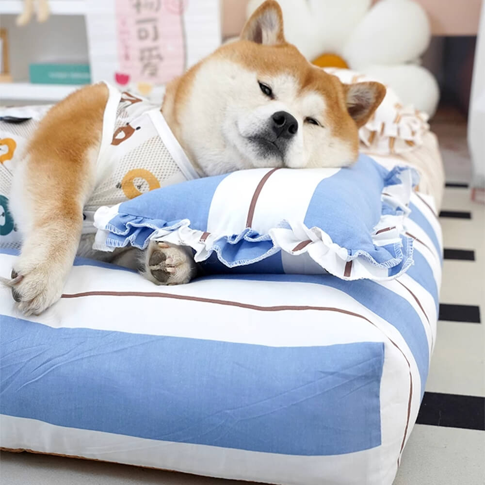 Striped Cotton Thick Padded & Soft Dog Pillow Bed