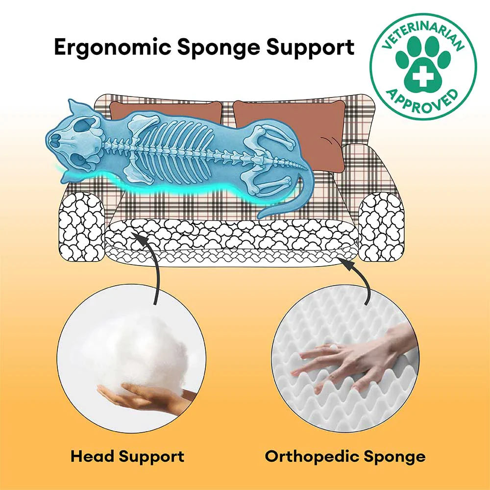 Vintage Plaid Plush Orthopedic Dog Sofa Bed with Pillows - CozyLuxe